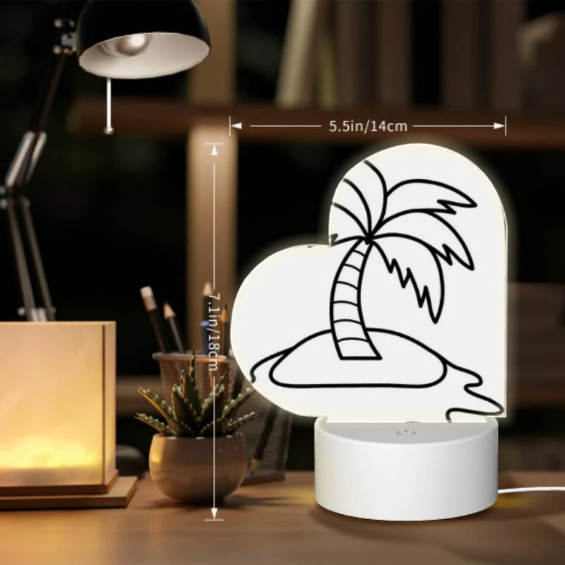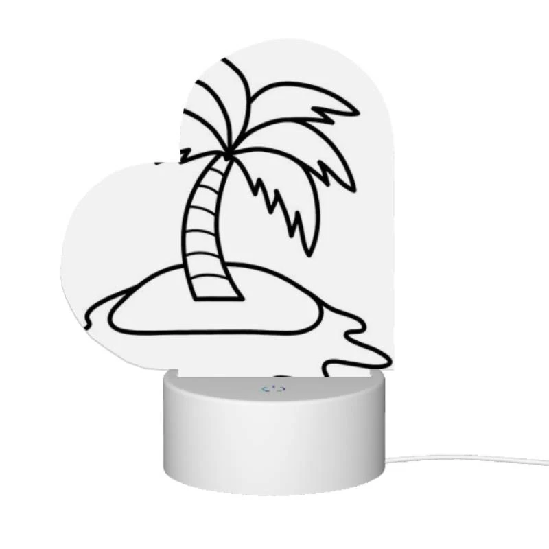 Love Acrylic Night Light, A Black And White Drawing Of A Palm Tree On A Small Island.