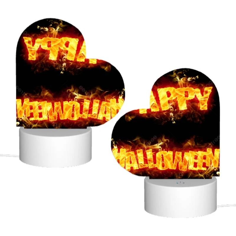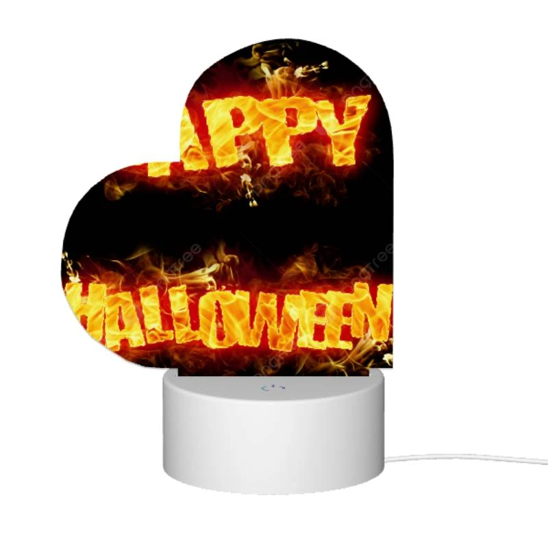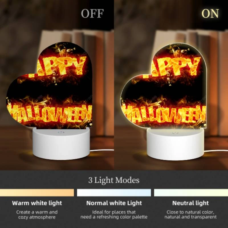 Love Acrylic Night Light, A Firey Sign That Says “Happy Halloween”.