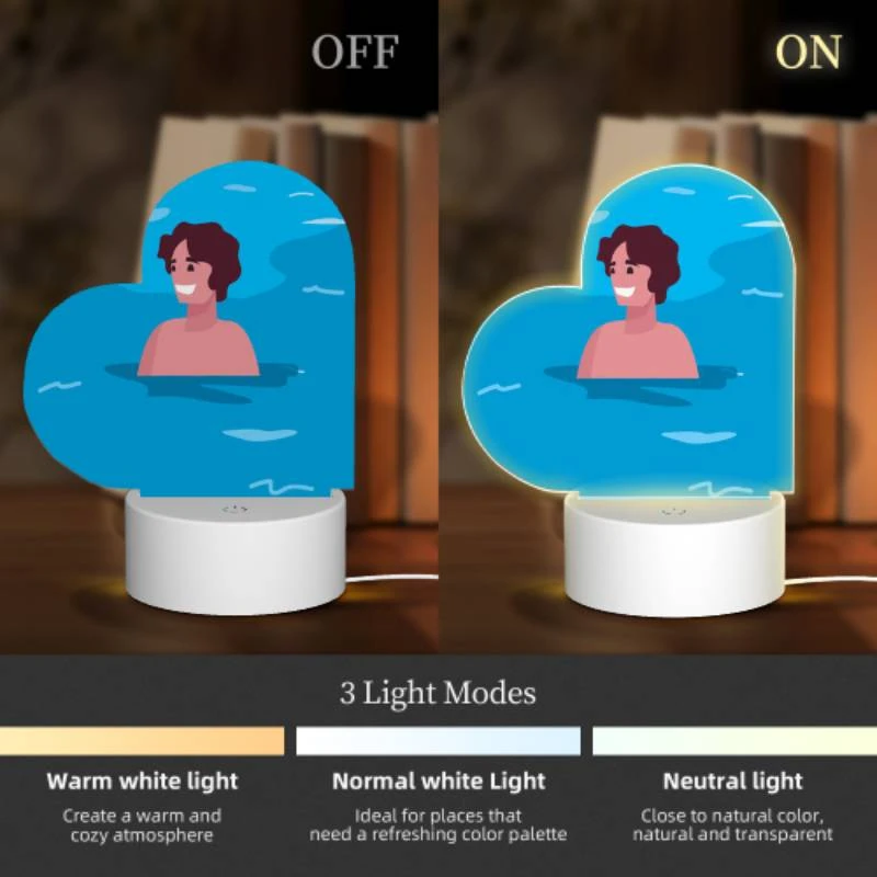 Love Acrylic Night Light, A Man Is Swimming In The Ocean