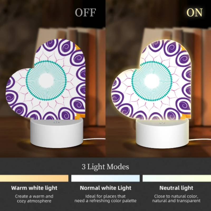 [Product Performance] The night light is composed of an acrylic light board and a plastic base. The night light has 3 light options (white light, warm light, warm white light). Touch to switch the light mode, which is soft and not dazzling, harmless to the eyes, and accompanies you into sweet dreams every night, creating a comfortable sleeping environment.