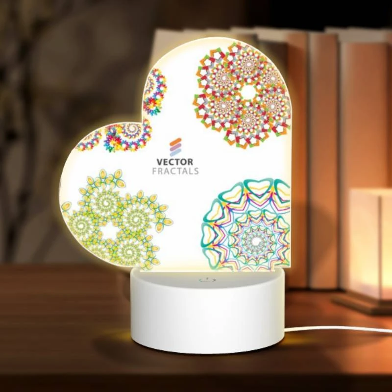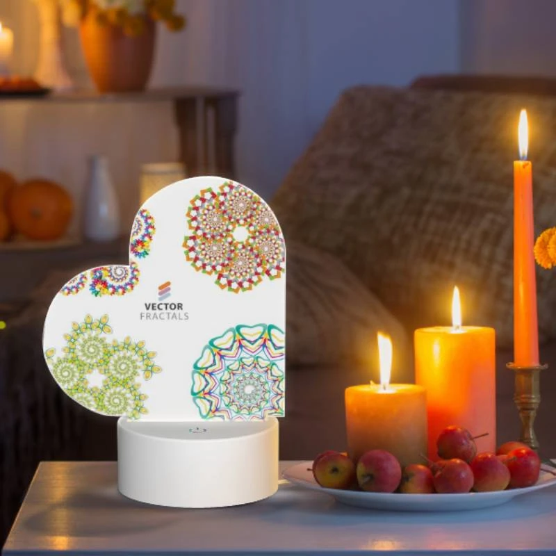 Love Acrylic Night Light, Four Different Colored Geometric Patterns.