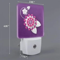 Night Light, Three Colorful Designs Of Flowers Are Displayed On A Wall.