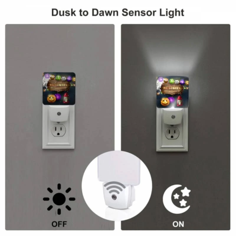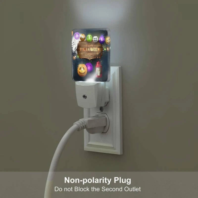 Night Light, A Sign That Says Happy Halloween With A Pumpkin And A Lit Candle.