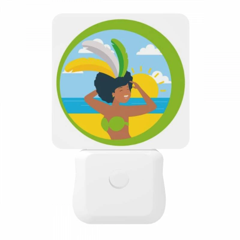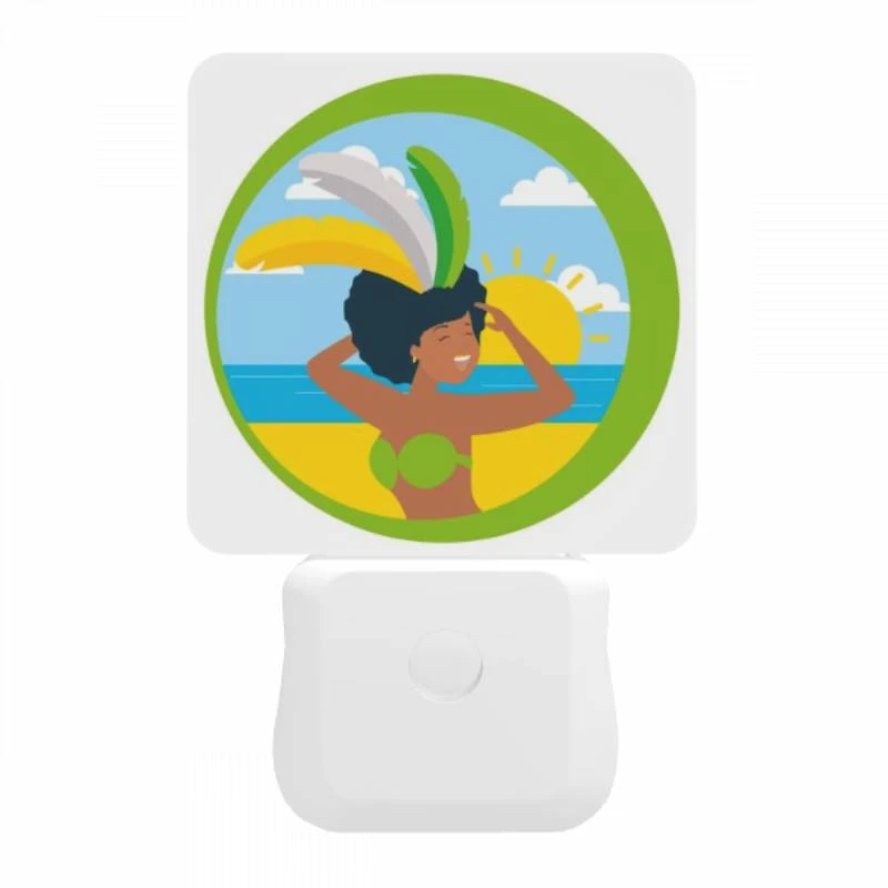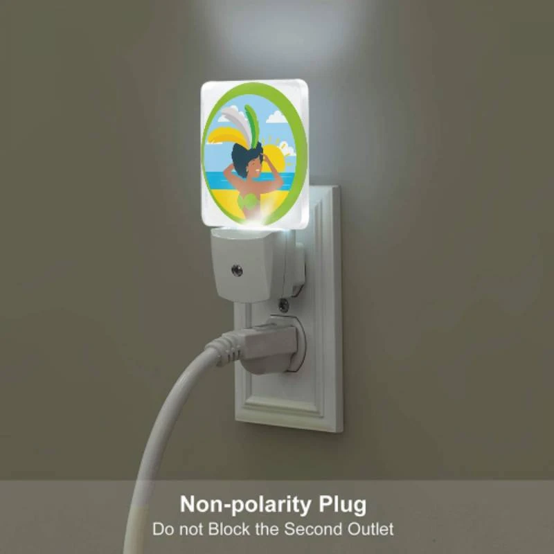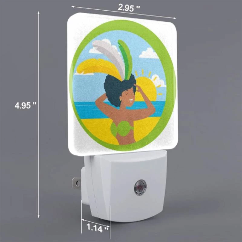 Night Light, A Woman Wearing A Grass Skirt And A Sun Hat Is Standing On A Beach.