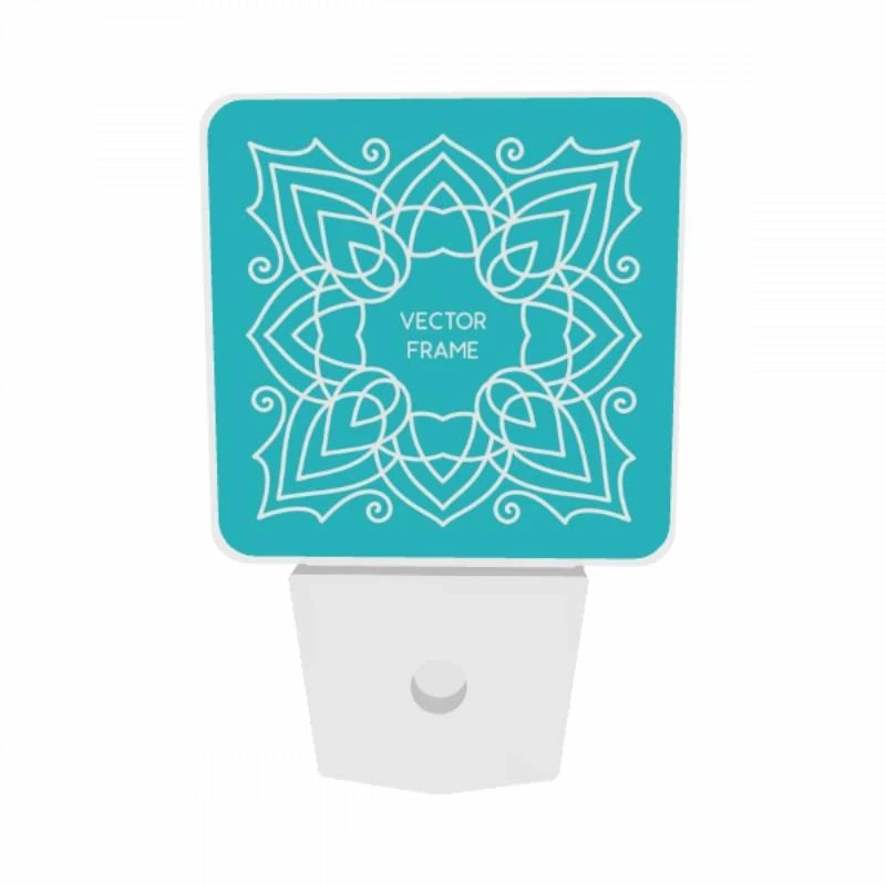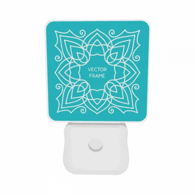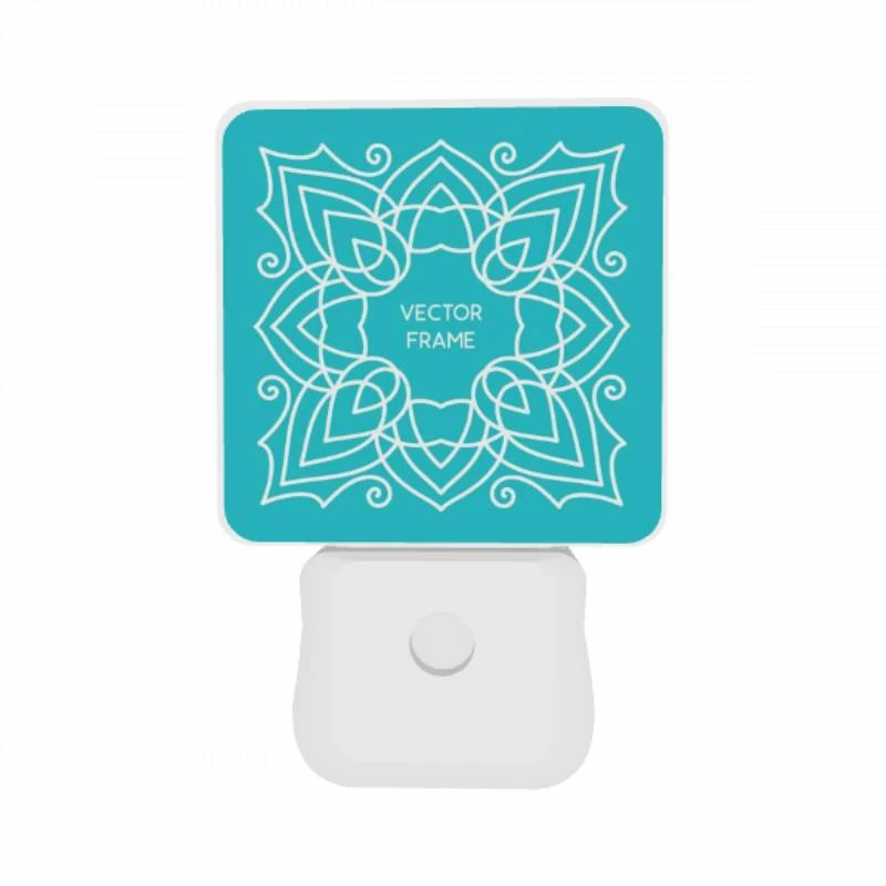 Night Light Set Of 2, A Blue And White Floral Design Is Displayed On A Blue Background.