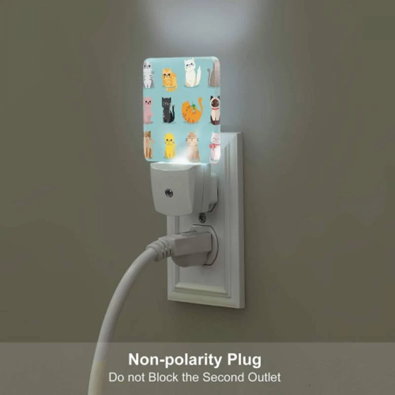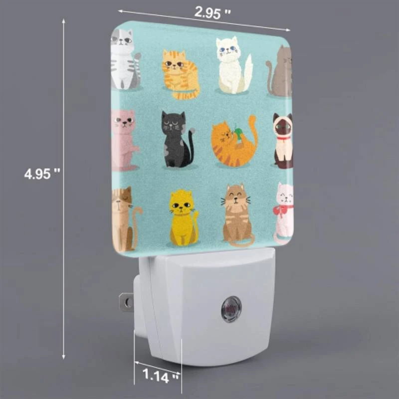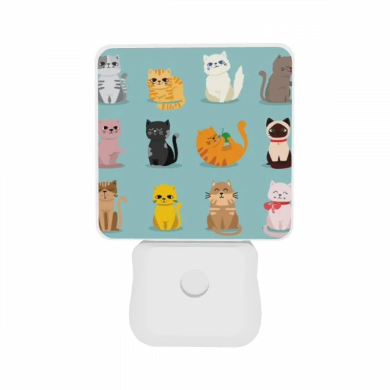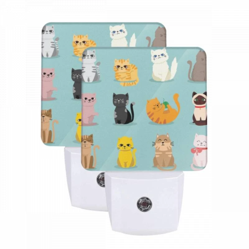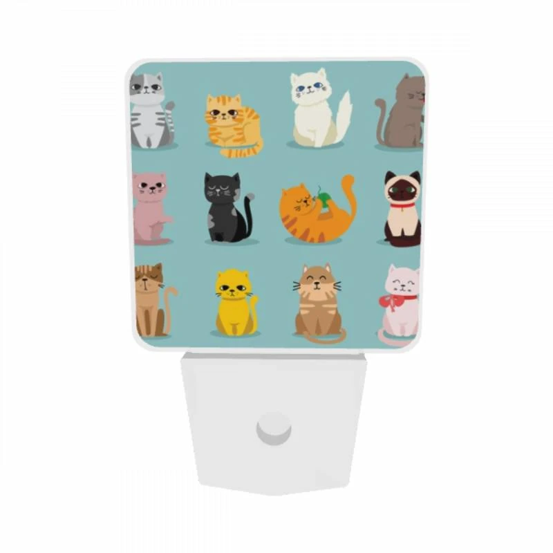 Night Light Set Of 2, A Collection Of Cats In Various Colors And Poses.