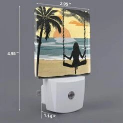 Night Light Set Of 2, A Woman Is Sitting On A Swing In Front Of The Ocean.