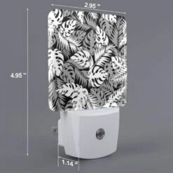 Night Light Set Of 2, A Black And White Image Of A Leafy Plant With A Pattern Of Dots.