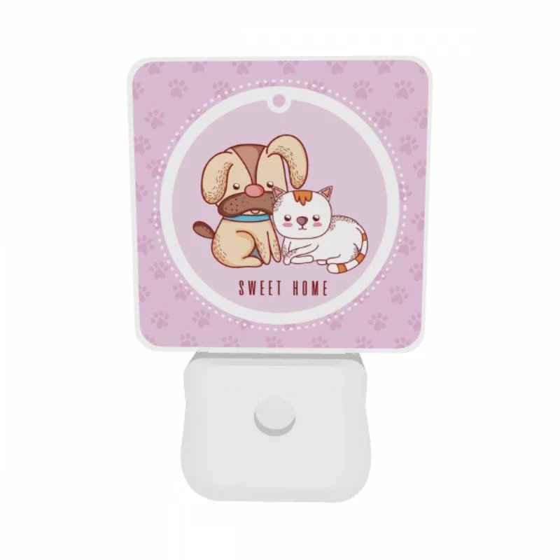 Night Light Set Of 2, A Dog And A Cat Are Sitting Together In A Pink Circle. -Pattern Diy Shop bda12b490fec3e9d2cf6997e012becece44f0ab7
