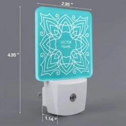 Night Light Set Of 2, A Blue And White Floral Design Is Displayed On A Blue Background.