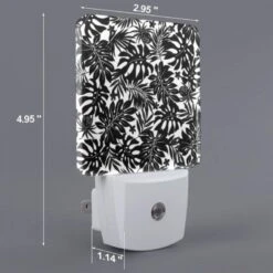 Night Light Set Of 2, A Black And White Image Of A Leafy Plant.