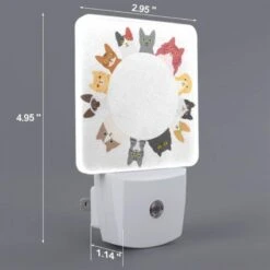 Night Light Set Of 2, A Circle Of Cats With Different Colors And Expressions.