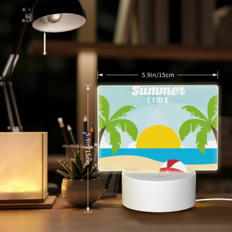 Rectangular Acrylic Night Light, A Beach Scene With A Sun