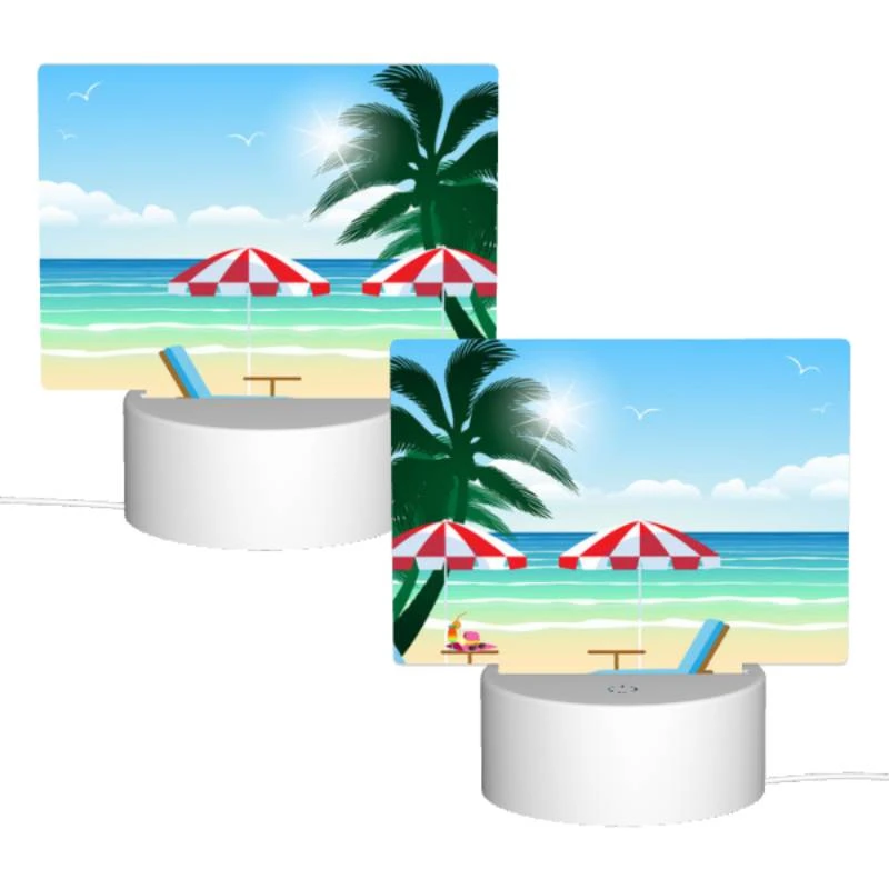 Rectangular Acrylic Night Light, A Beach Scene With Two Umbrellas And Two Chairs.