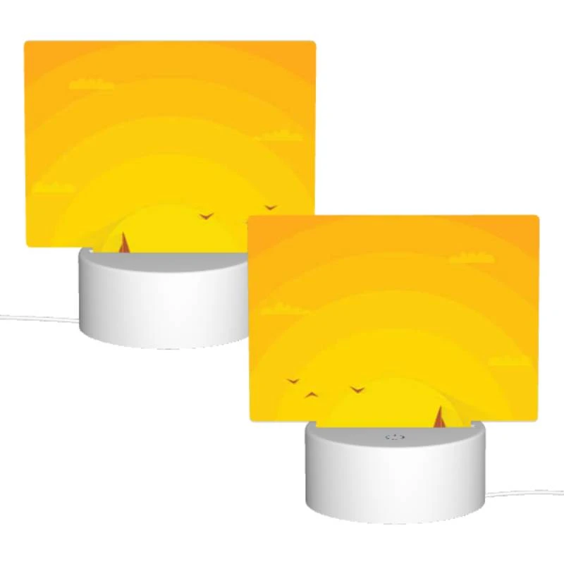 Rectangular Acrylic Night Light, A Boat Is Sailing On The Water With A Beautiful Sunset In The Background.