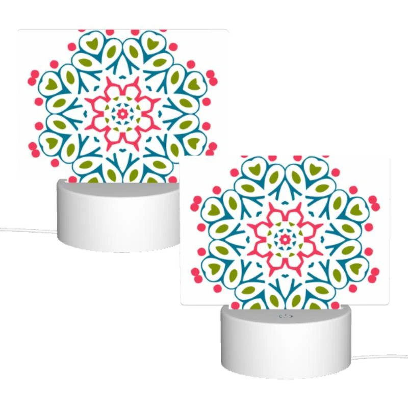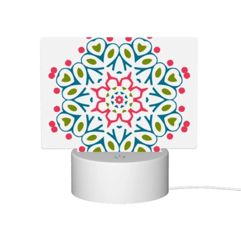 Rectangular Acrylic Night Light, A Colorful Flower Design With Pink And Blue Colors.