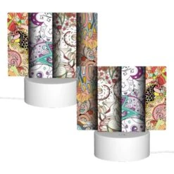 Rectangular Acrylic Night Light, Four Different Colored Paintings Of Swirls And Designs.