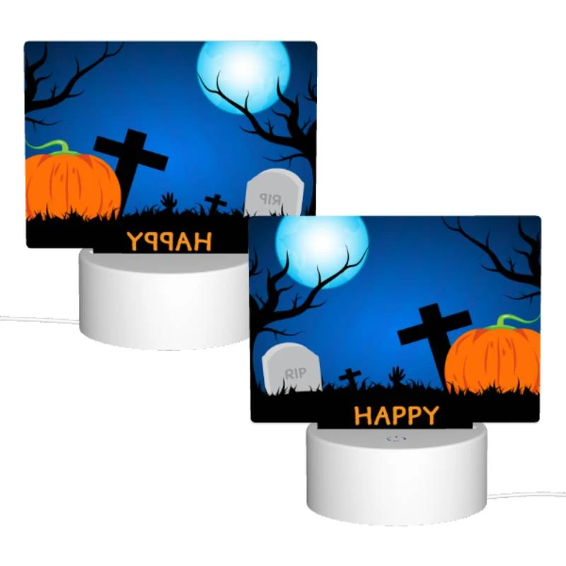 Rectangular Acrylic Night Light, A Halloween Scene With A Moon