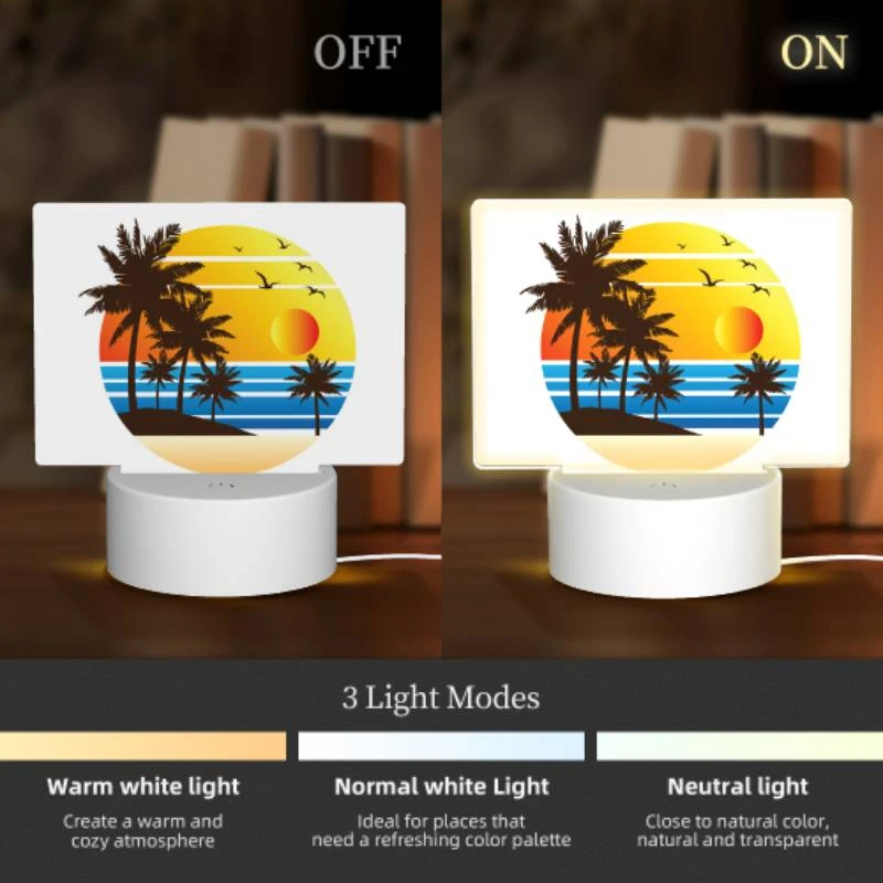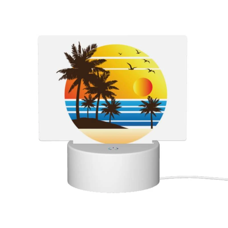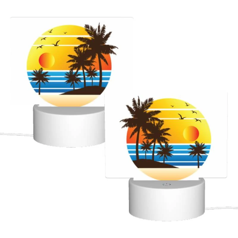 Rectangular Acrylic Night Light, A Sunset With Palm Trees And Birds.