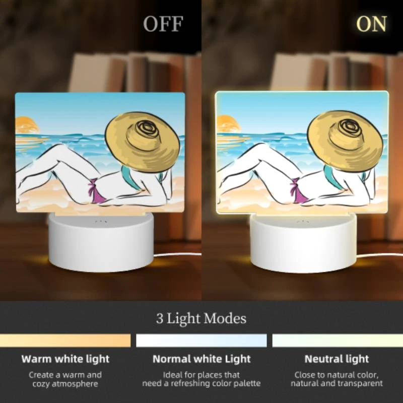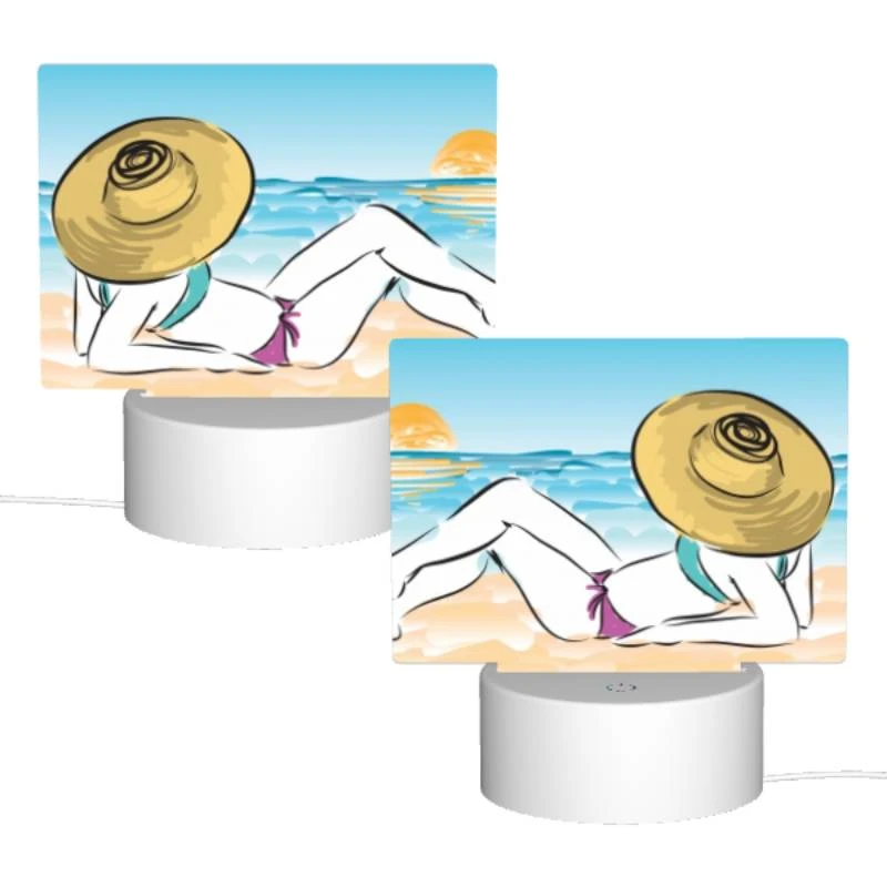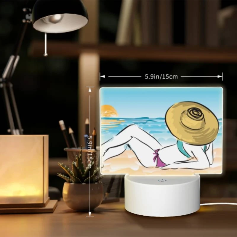 Rectangular Acrylic Night Light, A Woman Is Laying On The Beach