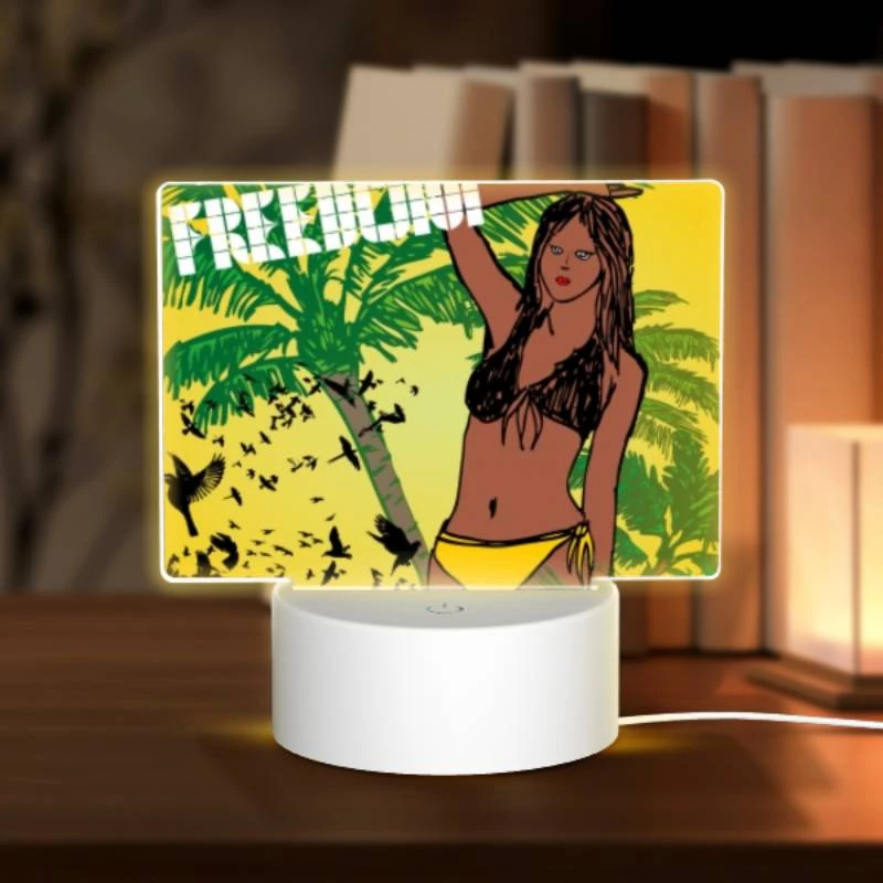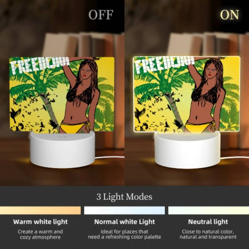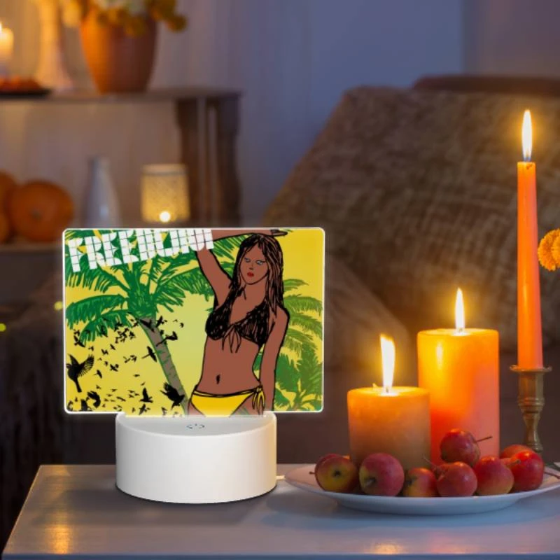 Rectangular Acrylic Night Light, A Woman With A Yellow Bikini Is Standing In Front Of A Tree With Birds Flying Around Her.