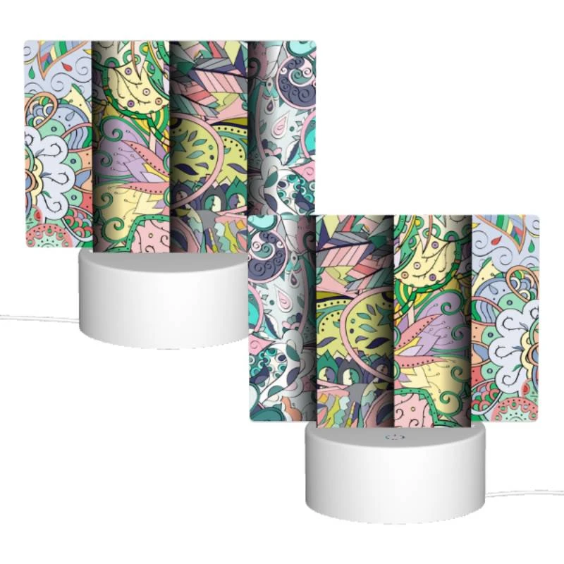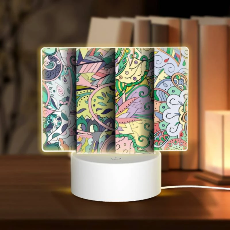 Rectangular Acrylic Night Light, A Colorful Floral Pattern With Various Plants And Flowers.