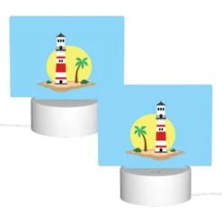 Rectangular Acrylic Night Light, A Lighthouse Is On A Small Island With A Sunset In The Background.