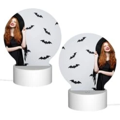 Round Acrylic Night Light, A Black And White Pattern Of Leaves.