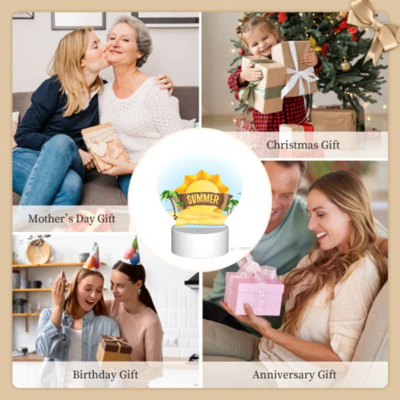 [Product Performance] The night light is composed of an acrylic light board and a plastic base. The night light has 3 light options (white light, warm light, warm white light). Touch to switch the light mode, which is soft and not dazzling, harmless to the eyes, and accompanies you into sweet dreams every night, creating a comfortable sleeping environment.