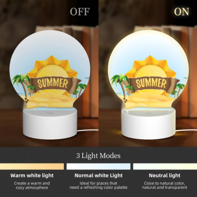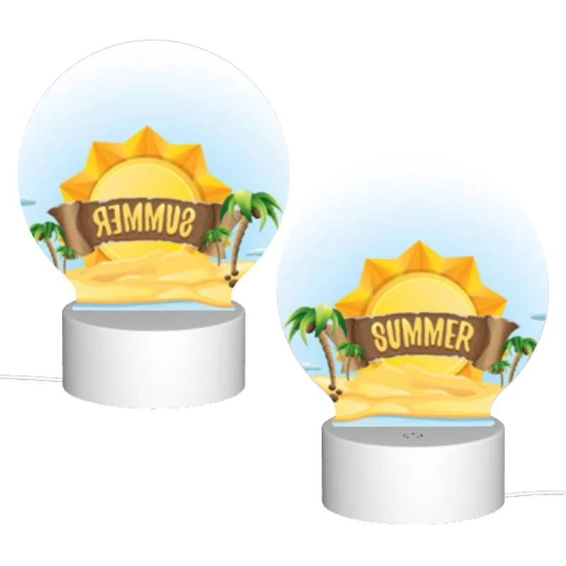 Round Acrylic Night Light, A Cartoon Sun With The Words “Summer” Written On It.