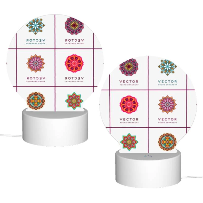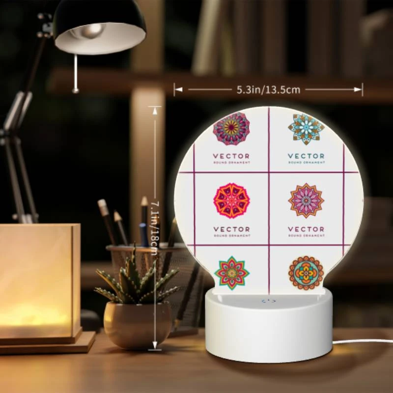 Round Acrylic Night Light, A Collection Of Colorful Geometric Shapes.