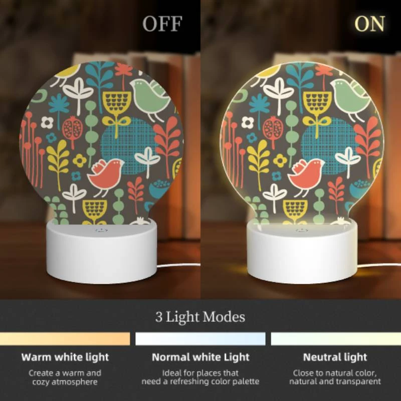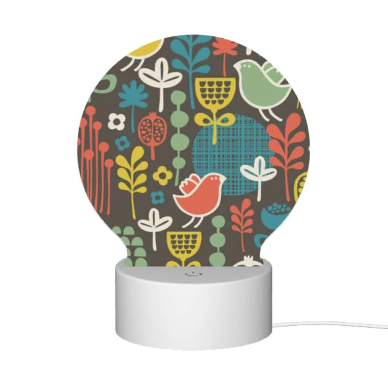 Round Acrylic Night Light, A Colorful Bird Pattern With A Bird In The Center.