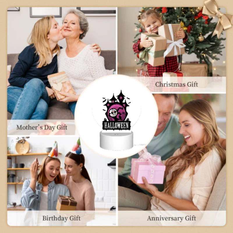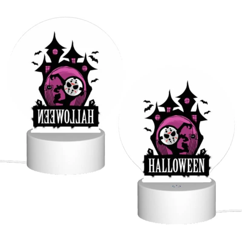 Be the first to review “Round Acrylic Night Light, A Halloween Poster With A Pink Background And A Haunted House.” Cancel reply