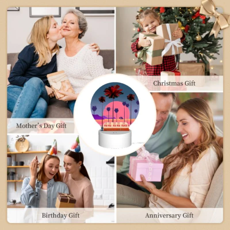 Be the first to review “Round Acrylic Night Light, A Red And White Van Is Parked In Front Of A Palm Tree.” Cancel reply