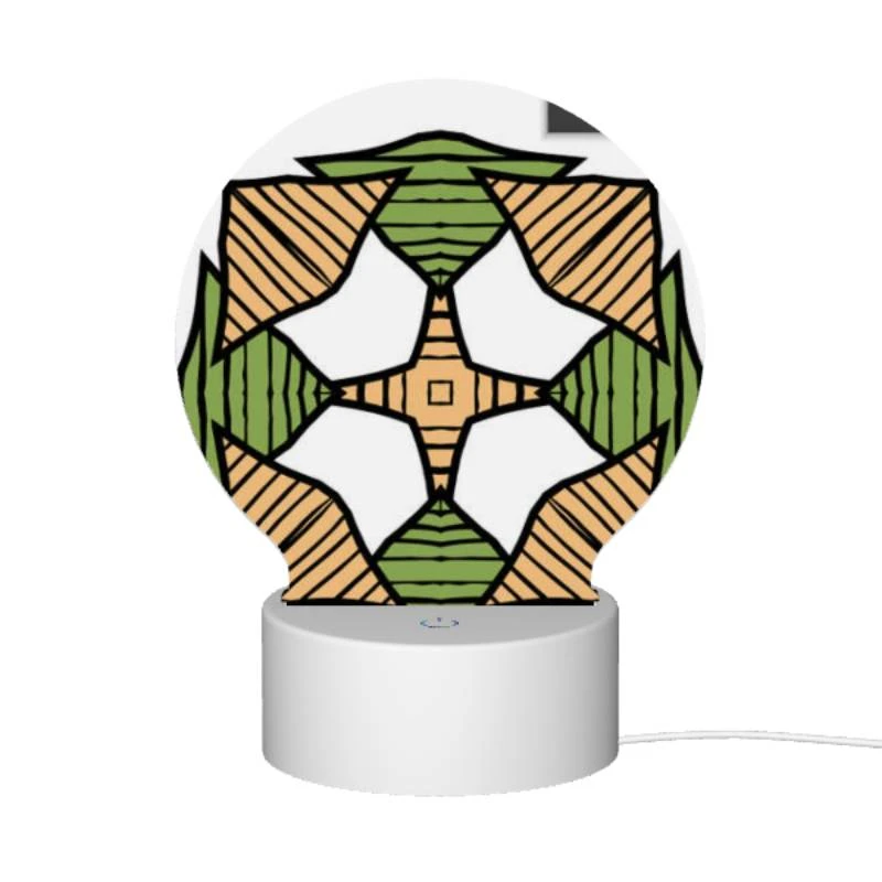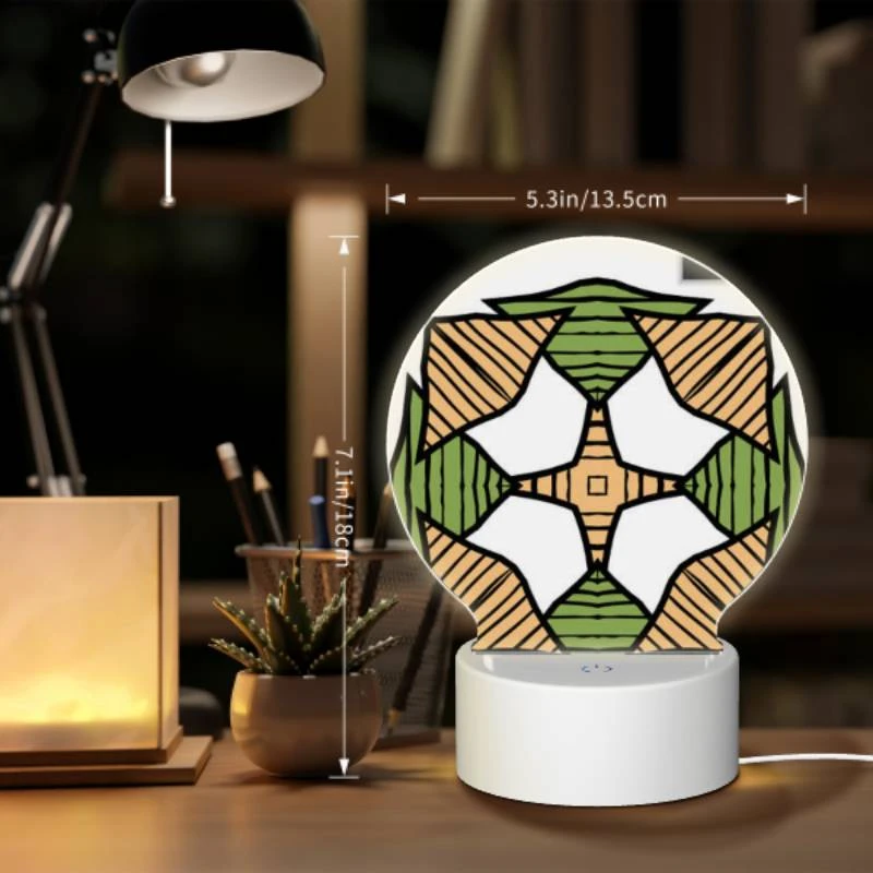 Round Acrylic Night Light, A Black And White Pattern Of Leaves.