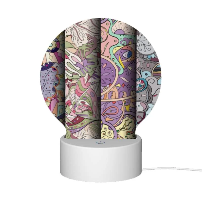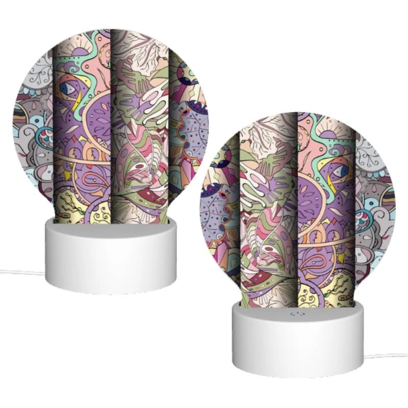 Round Acrylic Night Light, Three Colorful And Intricate Designs Are Displayed Side By Side.