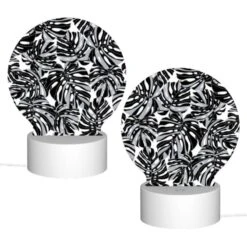 Round Acrylic Night Light, A Black And White Pattern Of Leaves.