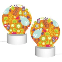 Round Acrylic Night Light, A Colorful Bird Pattern With A Bird In The Center.