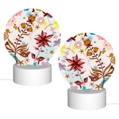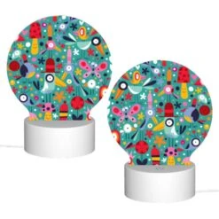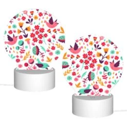 Round Acrylic Night Light, A Colorful And Vibrant Image Of Birds And Flowers.